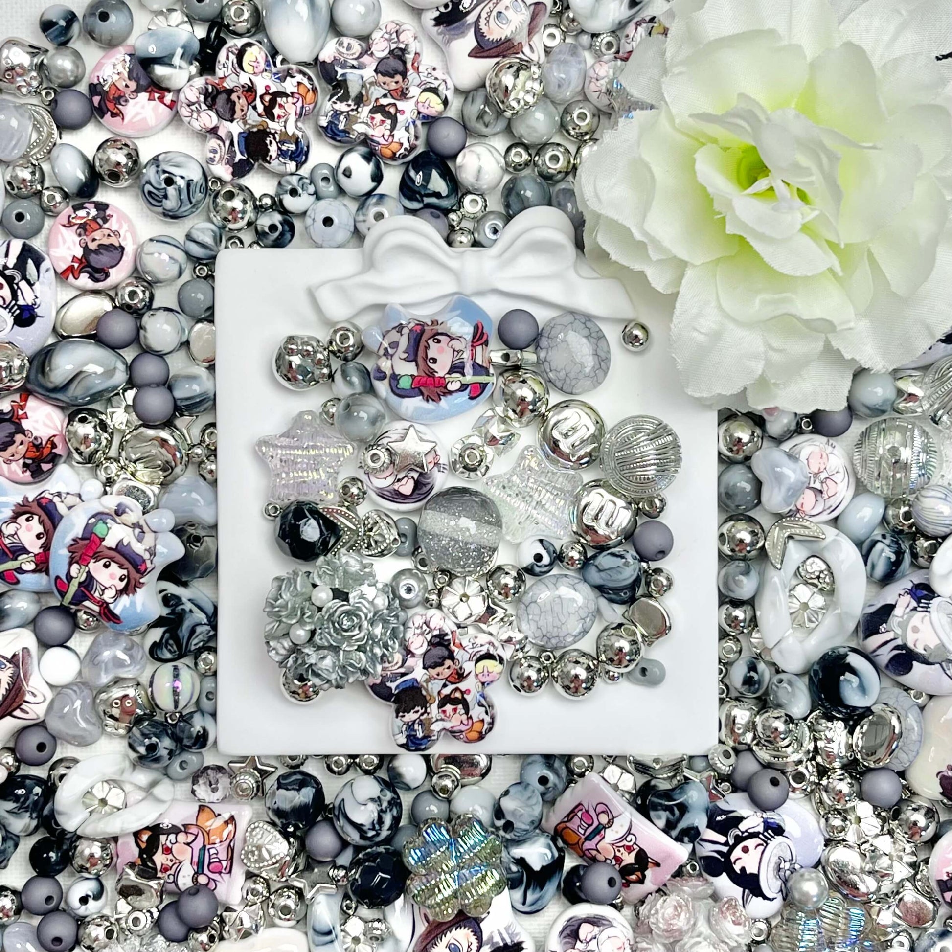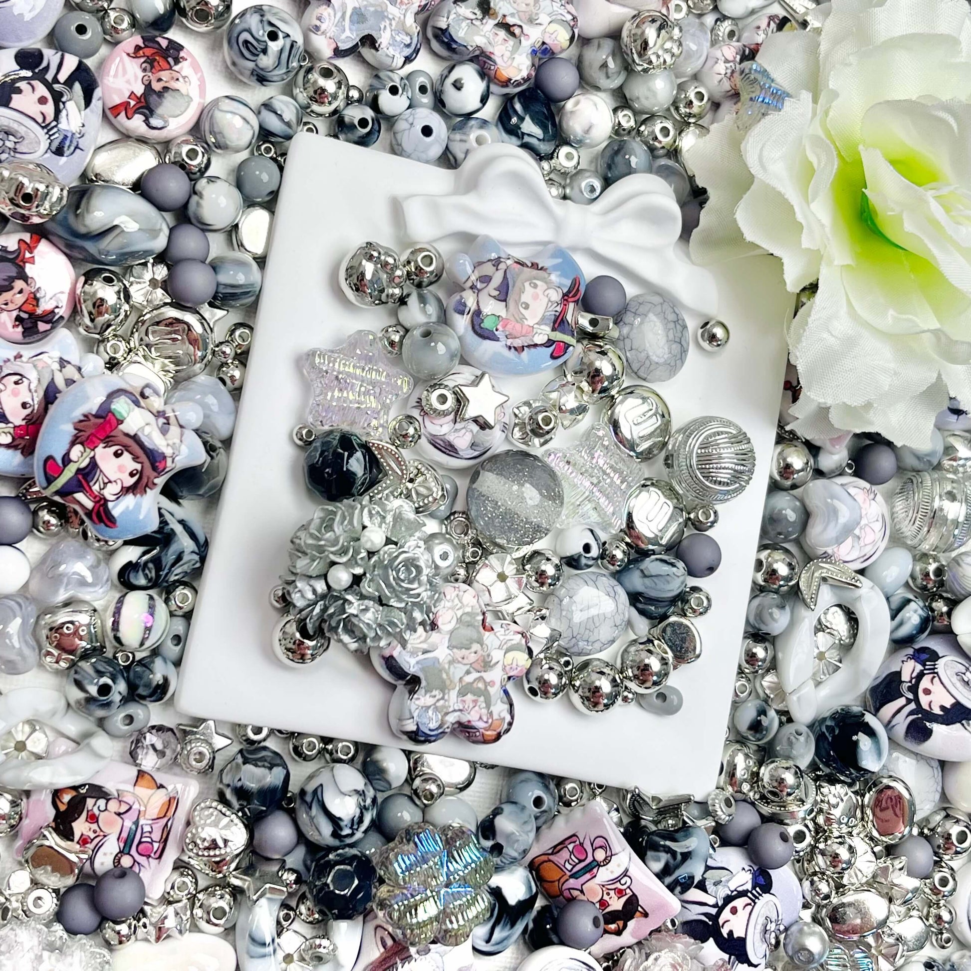 ♥【8.21新作】♥A0404 ブラックホワイトメロディ アクリルビーズ